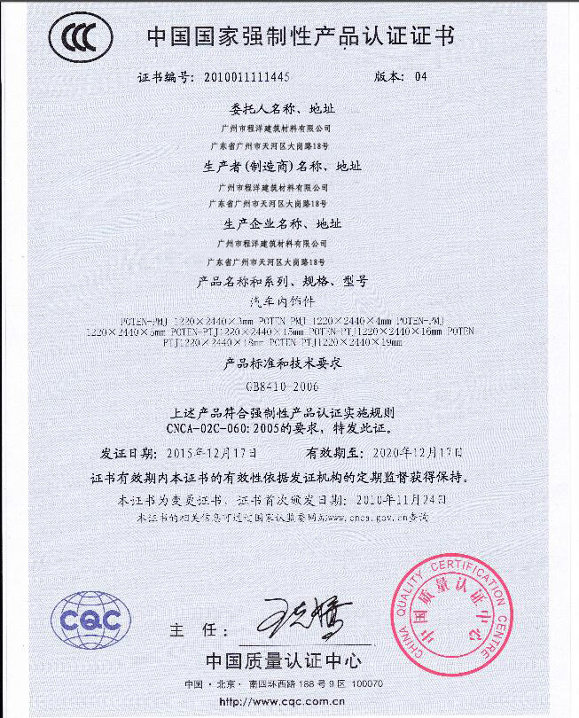 廣州市程洋新型材料有限公司專業研發和生產PVC共擠發泡板,結皮發泡板,自由發泡板,客車內裝飾板,PVC覆膜板,雕刻屏風雕花板,PVC櫥柜板,PVC防水浴室柜板,皮雕軟包底板以及發泡異型材等產品,厚度范圍為1mm~38mm。pvc板材全部采用無鉛環保型助劑生產,綠色環保, 符合歐美國家檢測要求,產品已通過ISO9000質量體系認證,甲醛測試報告,ISO證書,阻燃測試報告,SGS 測試報告,握釘力測試報告,ROHS測試報告等證書,并廣泛應用于雕刻屏風、復合(貼面)板、PVC燈飾、汽車內裝飾、櫥柜,浴室柜,廣告UV、校園文化,裝潢天花吊頂,高速公路隔音板,戶外攀登(巖)及工業應用等領域。